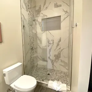 Certain rooms have a tiled floor and a stone fireplace along with a cupboard and a sofa for guests' convenience. They have a comfortable interior. The private bathrooms are fitted with a tub and a walk-in shower, along with a hairdryer and complimentary toiletries.